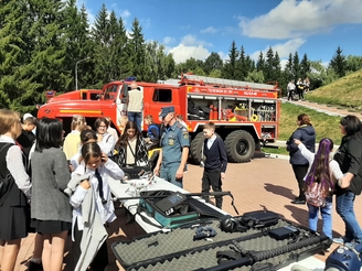 Для детей были оборудованы 8 учебных точек. Ребята познакомились с экспозицией «Альпинистская горка», с техникой для тушения пожаров и оборудованием для проведения поисково-спасательных работ, увидели приборы радиационно-химической разведки и дозиметрического контроля, индивидуальные средства защиты кожи и органов дыхания.
