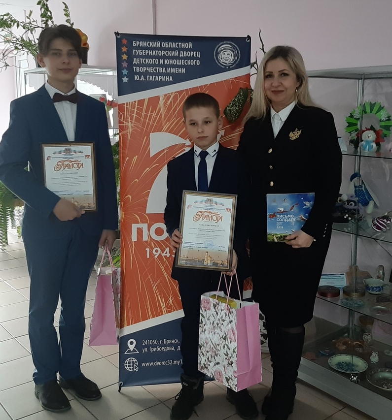 Будьте достойными гражданами России и продолжателями славных дел своих предков! Наше сотрудничество в развитии патриотического движения, в проведении конкурсов «Письмо солдату», «Память Победы», в укреплении наставничества в отношении детей, требующих особого внимания и подхода, будет продолжено.