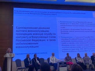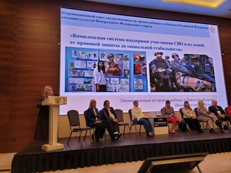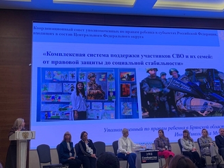 Уполномоченный по правам ребенка в Брянской области Инна Мухина выступила с докладом по теме «Комплексная система поддержки участников СВО и их семей: от правовой защиты до социальной стабильности», представив итоги проведенного мониторинга среди субъектов ЦФО по оказанию мер социальной поддержки участникам СВО и членам их семей.