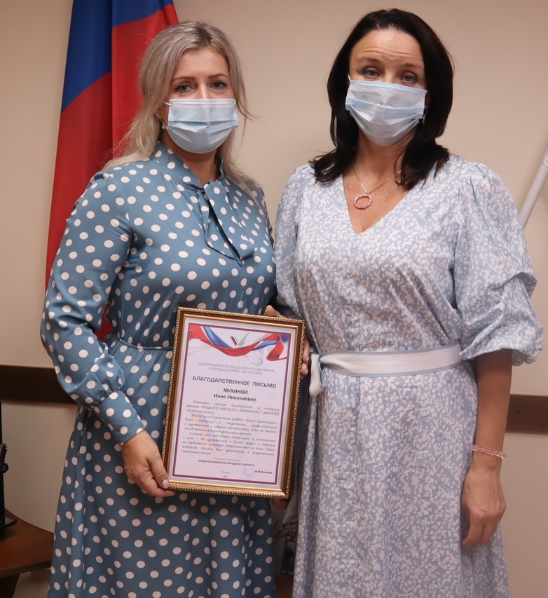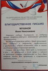 В региональном отделении ОНФ подвели итоги приемной кампании. Благодарственное письмо от руководителя исполкома Общероссийского народного фронта М.М.Кузнецова вручено Уполномоченному по правам ребенка Инне Мухиной.