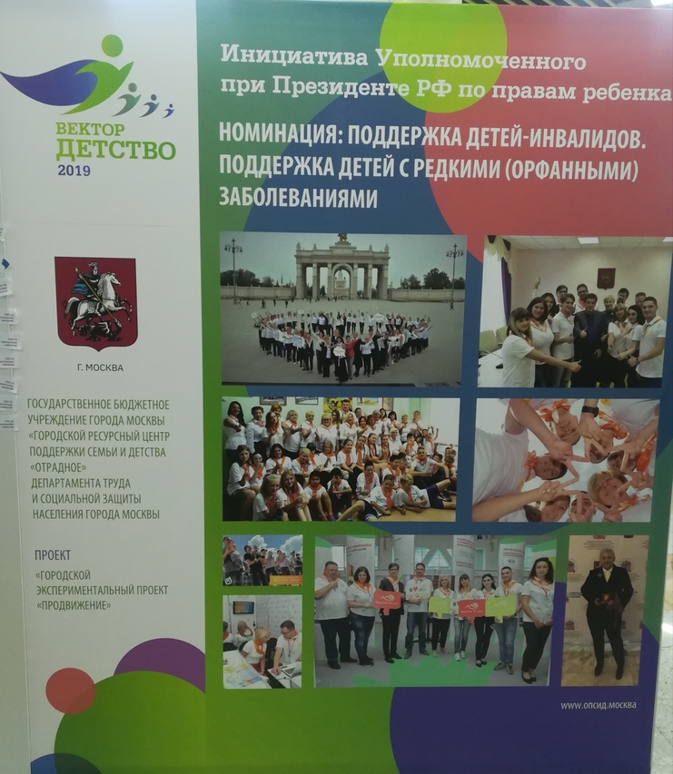 В номинации «Поддержка детей-инвалидов. Поддержка детей с редкими (орфанными) заболеваниями» победитель - ГБУ «Городской ресурсный центр поддержки семьи и детства «Отрадное» Департамента труда и социальной защиты населения г. Москвы с городским экспериментальным проектом «Продвижение», основная задача которого - формирование узнаваемости системы организаций поддержки семьи и детства.