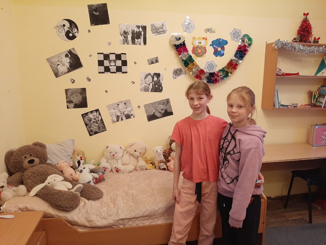 В свою очередь, дети показали символический кукольный спектакль о елочке, которая осталась жить одна, искала себе применение, но со временем поняла, что ее дом там, где она родилась, куда зовут ее корни…Потом детишки взяли гостей за руки и наперебой просили, чтобы посмотрели их комнаты. Девчонки с гордостью показывали свои уютные комнаты, поделки, подарочки, мальчишки рассказывали о своих увлечениях (посещают секцию футбола и картинг).