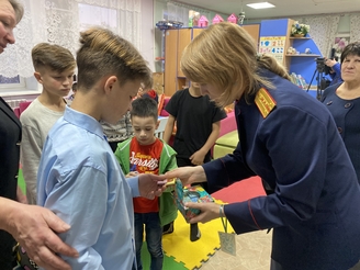Конечно, привезли детям подарки. Следственное управление подарило учреждению новый телевизор и сладкие подарки, а Инна Мухина поздравила деток с наступающими новогодними праздниками и подарила от Совета отцов при Уполномоченном по правам ребенка необходимые канцелярские принадлежности, детские наборы для творчества, настольные игры, книги.
