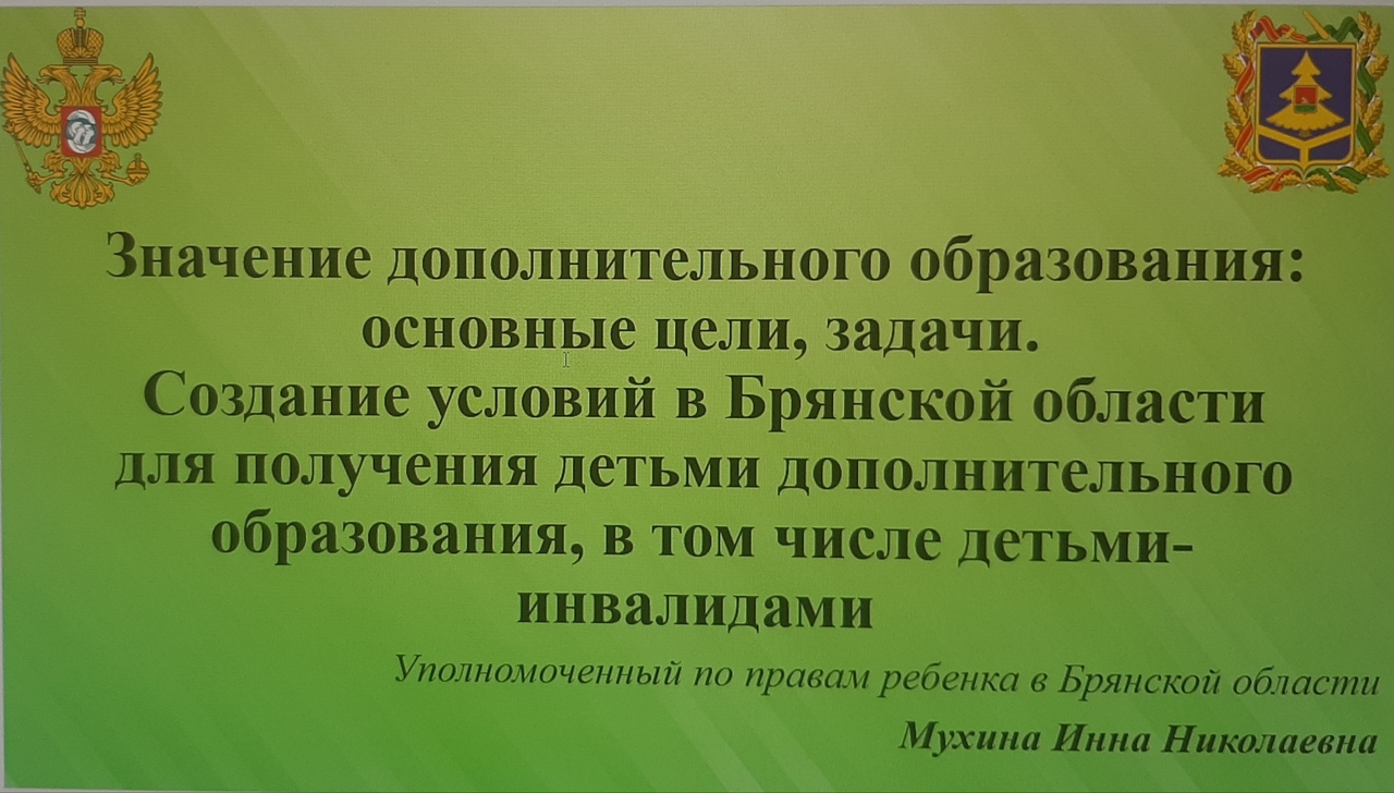 По обозначенной теме на заседании выступила Инна Мухина, которая представила систему дополнительного образования в Брянской области, в том числе обозначила вопрос создания условий для получения дополнительного образования детьми-инвалидами.