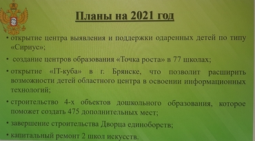 - открытие «IT-куба» в г. Брянске, что позволит расширить возможности детей областного центра в освоении информационных технологий;