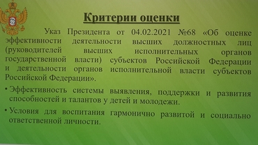 04.02.2021 Президент подписал Указ №68 «Об оценке эффективности деятельности высших должностных лиц (руководителей высших исполнительных органов государственной власти) субъектов Российской Федерации и деятельности органов исполнительной власти субъектов Российской Федерации».