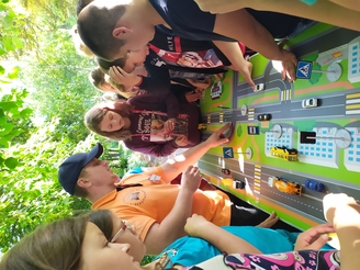 Дети разделились на 4 команды и поочередно проходили на своеобразные обучающие станции.