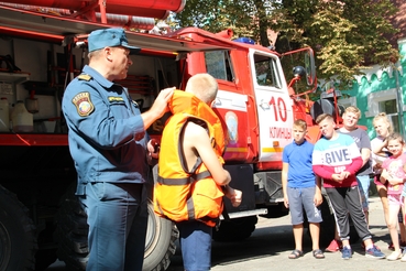 Специалисты ГУ МЧС продемонстрировали спасательную экипировку при тушении пожара и спасении людей на воде, научили пользоваться огнетушителем.