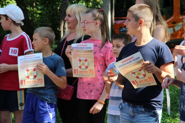 С целью снижения чрезвычайных происшествий с детьми Уполномоченный по правам ребенка в Брянской области Инна Николаевна Мухина, сотрудники ГУ МЧС по Брянской области «Клинцовский», УГИБДД России по Брянской области провели совместное мероприятие «Научись спасать жизнь» для детей, отдыхающих в санатории «Вьюнки».
