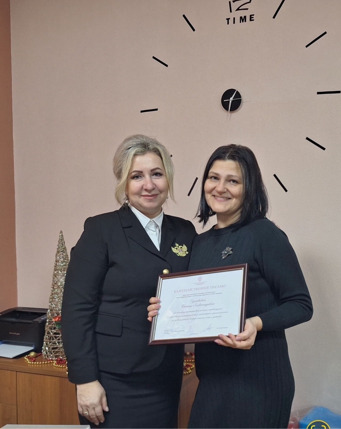 Уполномоченный по правам ребенка в Брянской области Инна Мухина отметила: «С удовольствием выполнила поручение Уполномоченного при Президенте Российской Федерации по правам ребенка Марии Львовой-Беловой и вручила Благодарственные письма двум руководителям некоммерческих организаций – Евгении Орачевской и Оксане Инашевской.