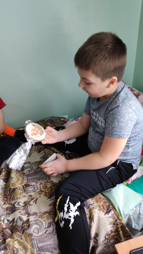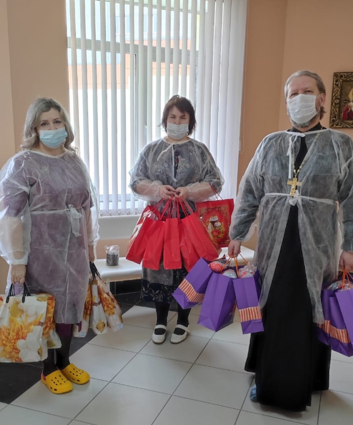 Передали подарки от Митрополита Брянского и Севского Александра, подарили куличи, имбирные пряники, книги, комплекты посуды, сладости, игрушки, соки, фрукты и, конечно, пасхальные яйца как символ светлого праздника Воскрешения Христова!