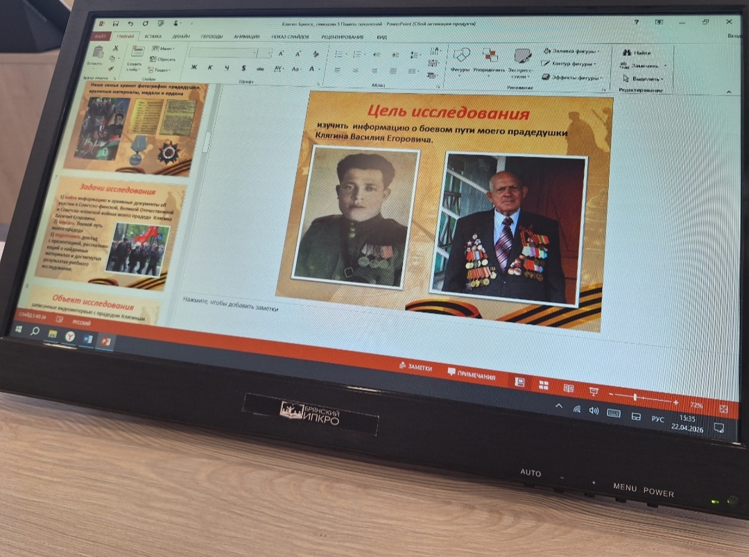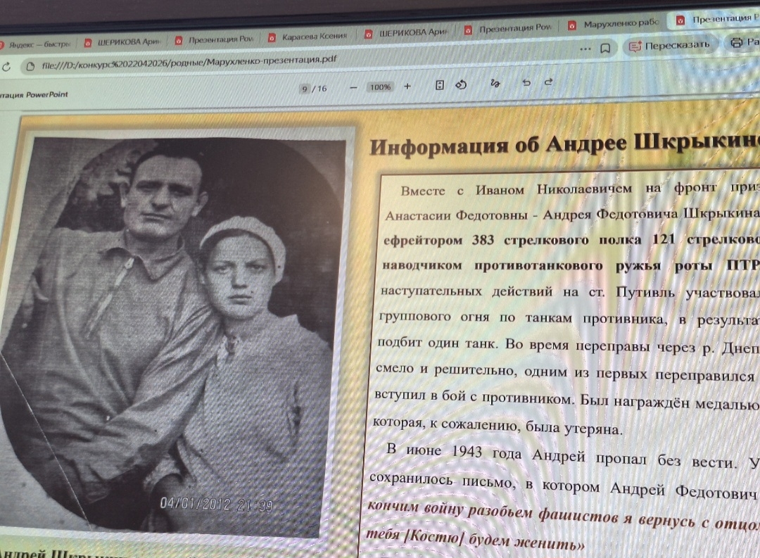 Исследовательские работы подкреплены архивными материалами (сканы наград, военных билетов...), содержат личные сведения военных, фотографии с фронта, переписку защитника со своей семьей…